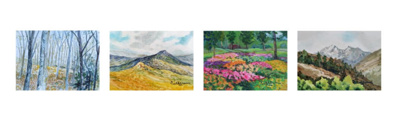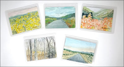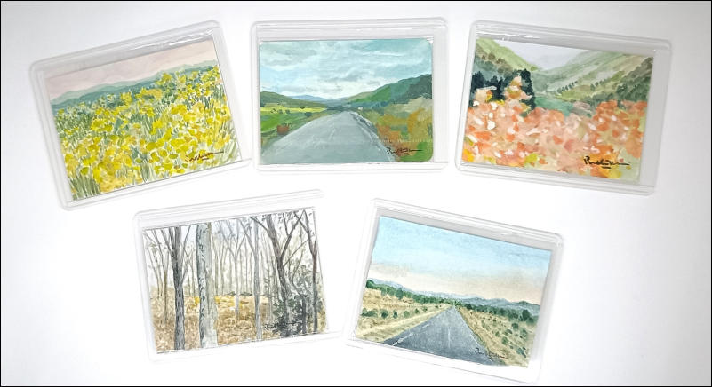 Our collection of small paintings, each measuring just 3.5 x 2.5 inches,