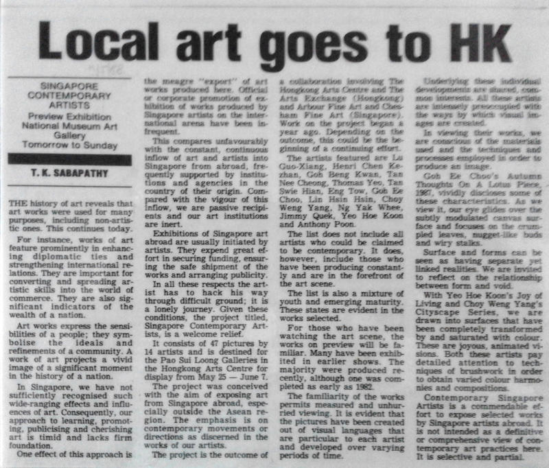 1988 Exhibited in Singapore Artist Exhibition, Sogo Art