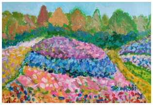 Her paintings, pendants, and earrings are loved and collected by art