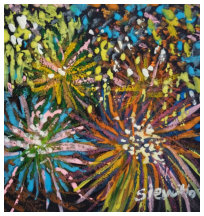 Her paintings, pendants, and earrings are loved